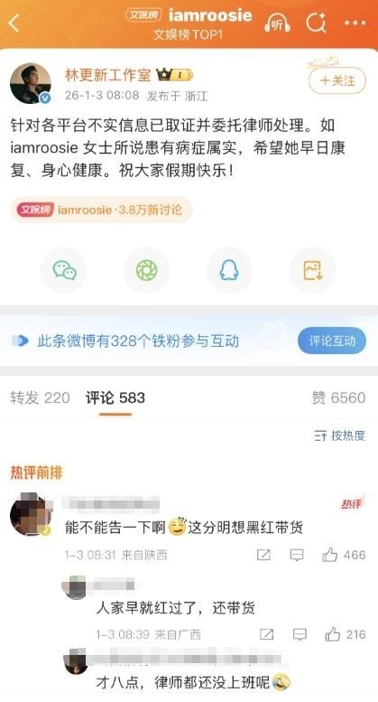 面对指控,林更新团队表现得异常冷静,仅表示已交由法务处理。