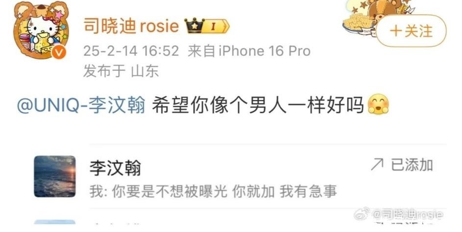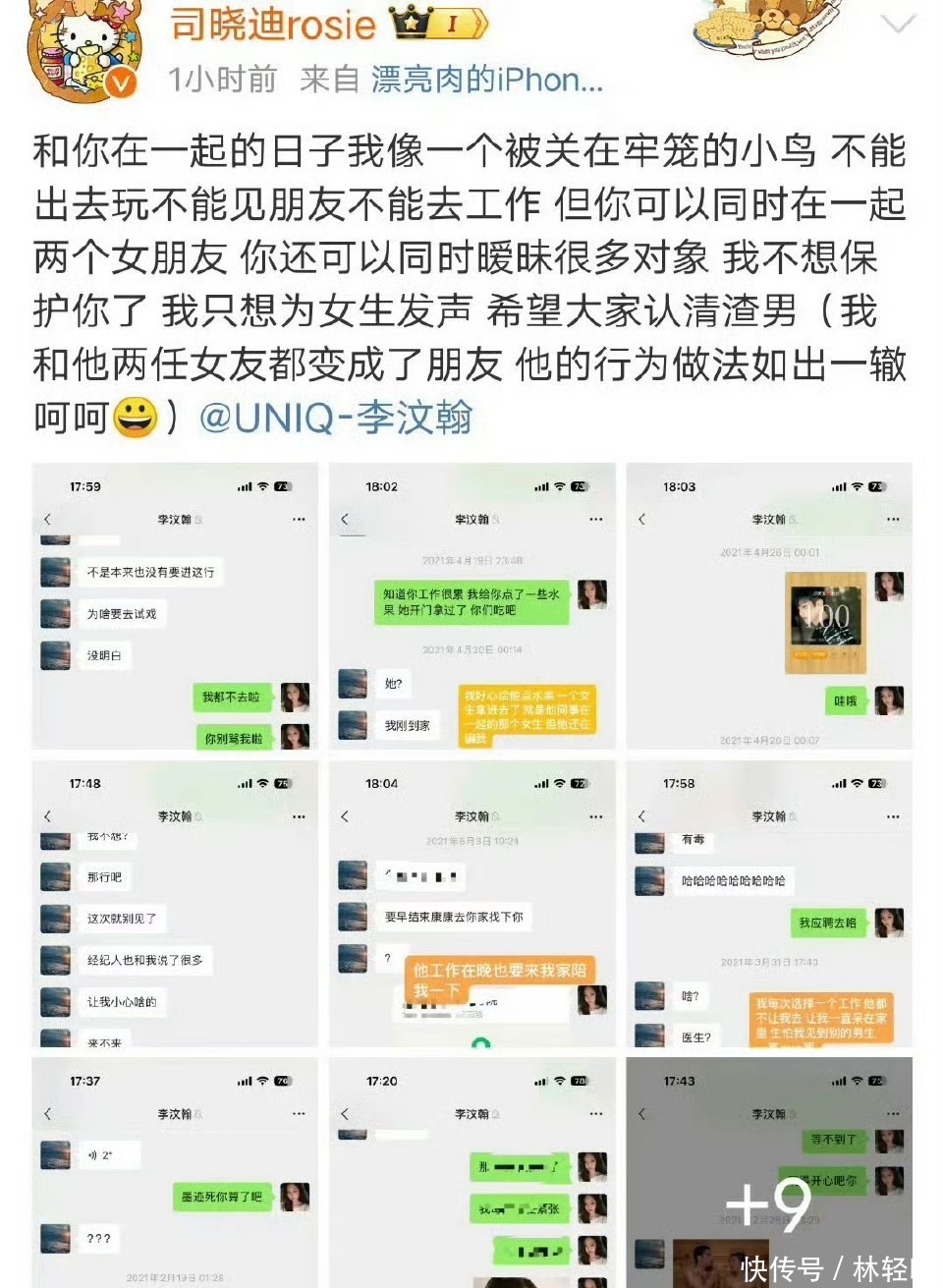 司晓迪微博账号李汶翰被曝出轨,聊天记录辣眼 ——搜狐网内娱引爆!司晓迪勇位顶流,鹿晗纹身照及范丞丞私聊曝光——网易新闻女博主深夜爆料与众多男艺人往来,含鹿晗、范丞丞、林更新等;今晨密集回应---2026-01-03----上观新闻